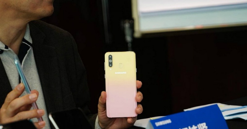 The CEO of Samsung Mobile China shows the A8s FE today, with changeable color. Samsung plan to sale on 14. Feb. pic.twitter.com/TKNkBcKb6I