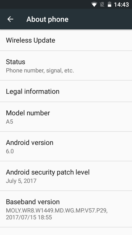 Na telefon je unaprijed instaliran Android 6.0 Marshmallow OS sa zakrpama iz jula 2017. godine.