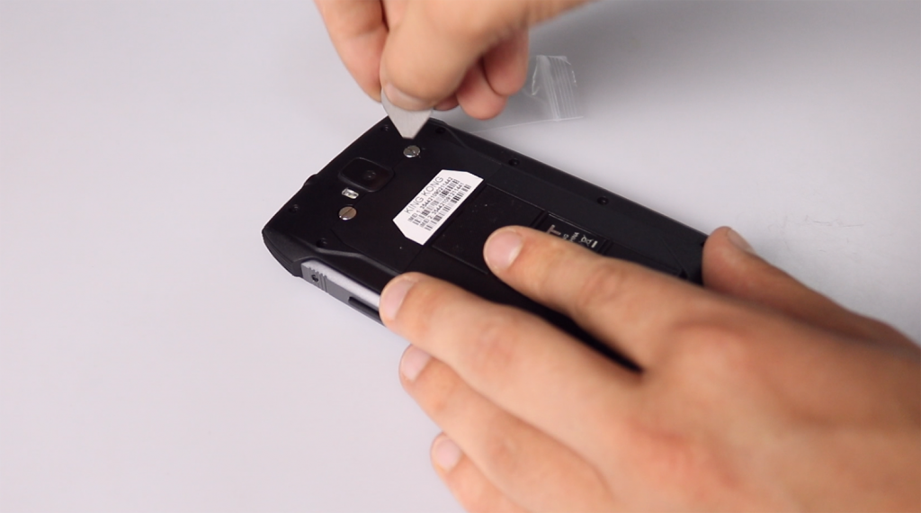 Da se vratimo i na onu iglicu, to jeste šarafciger koji smo spomenuli za vađenje SIM slota. Cubot je veoma simpatično napravio poklopac ispod kojeg se nalaze slotovi za SIM kartice i microSD karticu. Govorimo u množini, jer je King Kong dual-SIM telefon. Poklopac se skida tako što moramo odšarafiti dva vijka koja se nalaze pored kamere, a tu će nam pomoći naš – šarafciger.