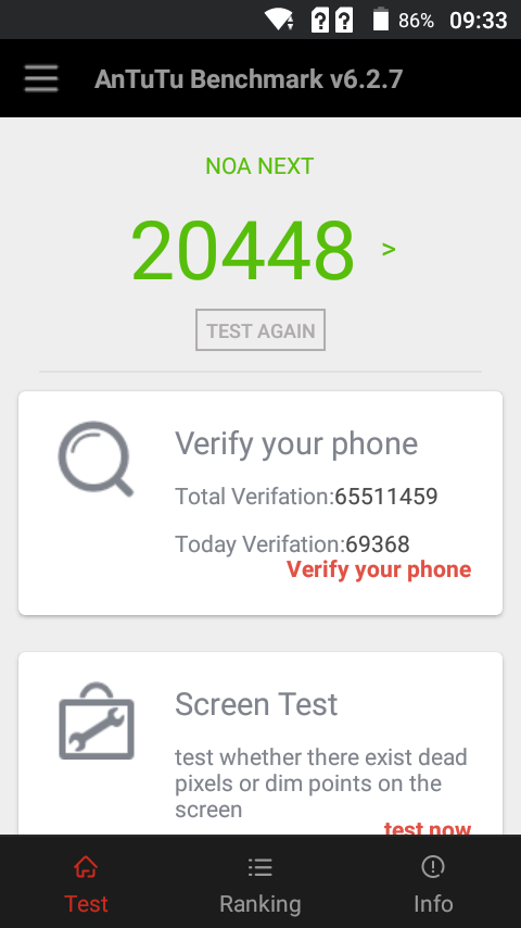 Dobar pokazatelj mogućnosti modela Core Next jeste i naš stalni AnTuTu Benchmark test koji je pokazao 20 448 bodova.