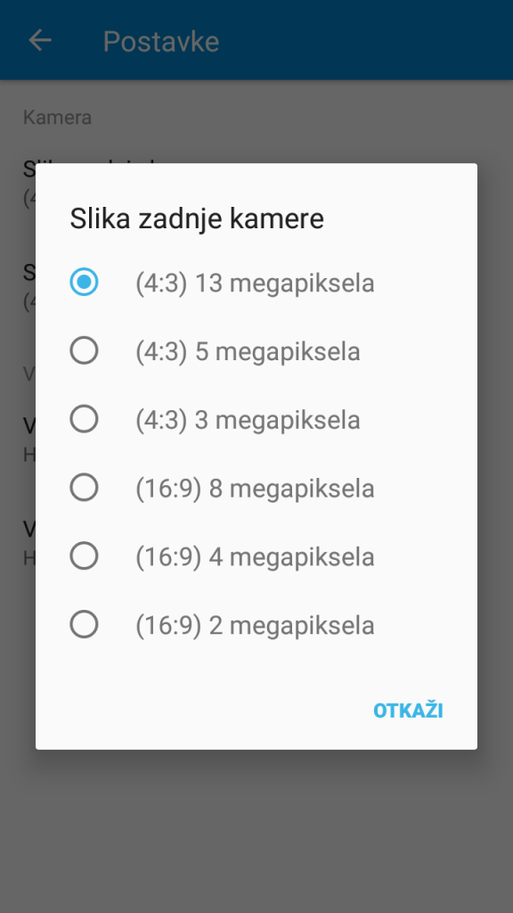 Dostupne rezolucije za slikanje su: