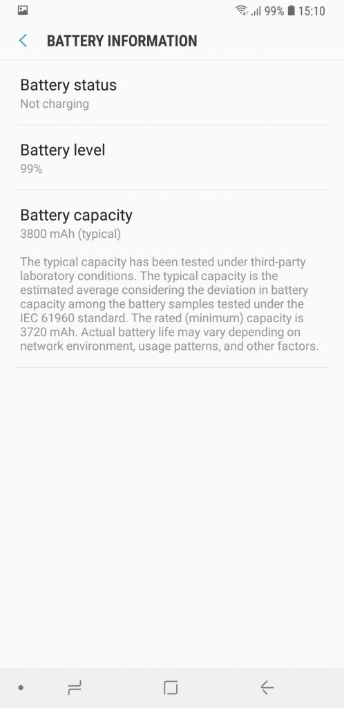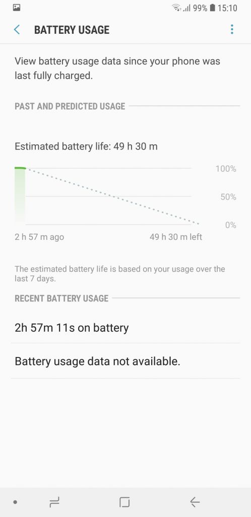 Baterija koja se nalazi u ovom telefonu ima kapacitet od 3800 miliamper časova što predstavlja zlatnu sredinu, i uzimajući u obzir štedljivi 14-nanometarski čipset, rezultati autonomije Galaxy-a A9 su izvanredni. Puna baterija je sposobna napajati telefon čitav dan, a ako niste zahtjevan korisnik, uređaj bez punjača može izvući i dva dana. Ukupno vrijeme ili Screen On Time uz osvjetljenje na 60%, aktivnom WiFi mrežom, i srednje zahtjevnim korištenjem je nešto iznad osam sati.